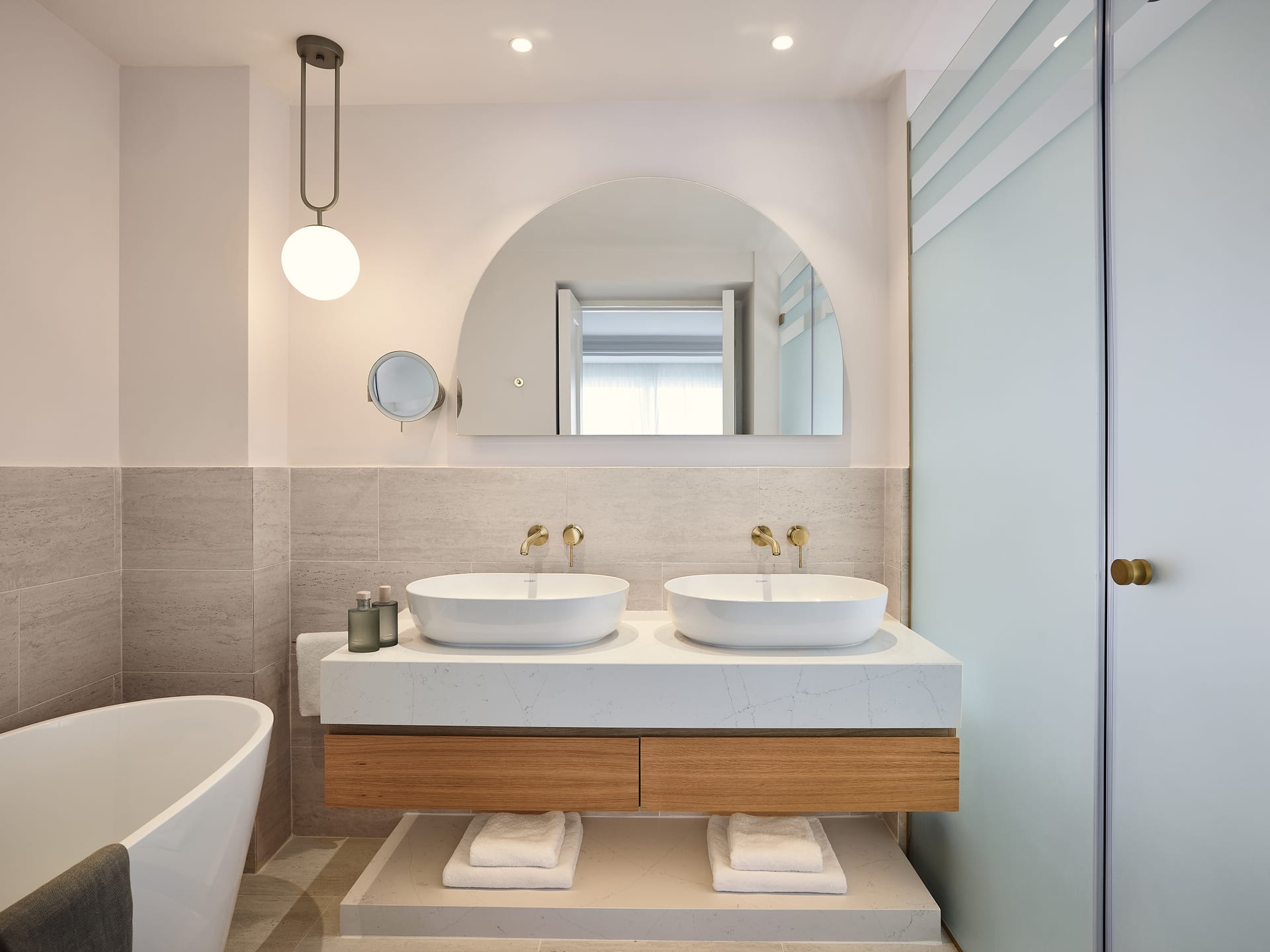 A spacious escape designed for those seeking comfort and enhanced privacy. This suite features a master bedroom and an elegant living area with soft, earthy tones, each with its own en-suite bathroom. Whether lounging indoors or enjoying the scenery from your private balcony, every moment echoes a soothing ambiance.